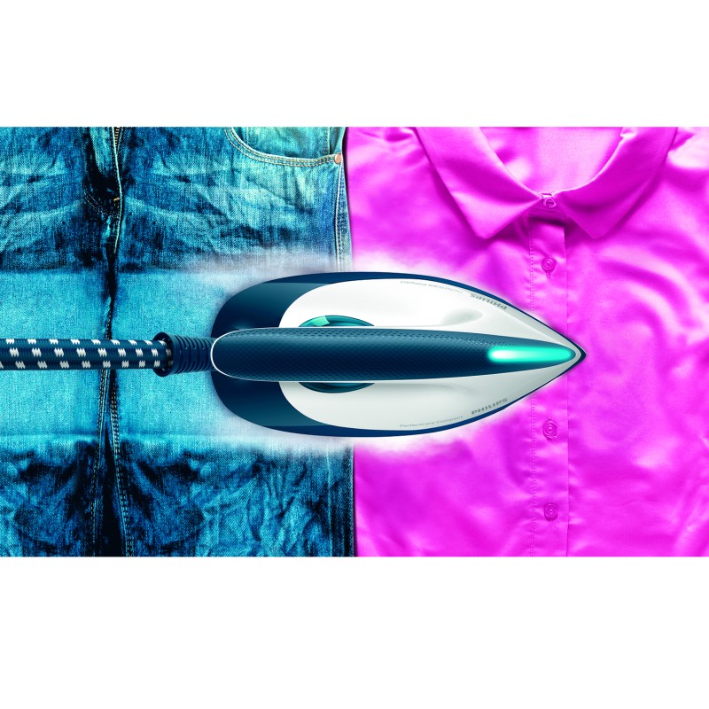 La vapeur puissante et continue vous permet de terminer rapidement tout votre repassage, et grâce à la technologie OptimalTEMP, vous n'avez plus à changer manuellement la température. Compact et léger pour une utilisation et un rangement facilités.