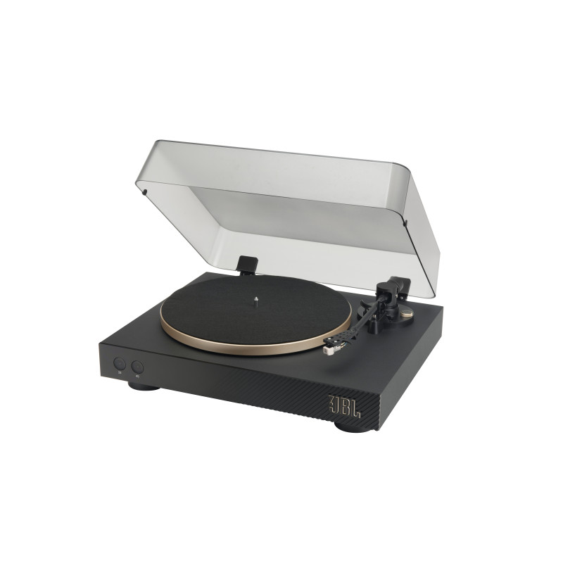JBL Spinner BT. Type: Tourne-disque entraîné par courroie, Couleur du produit: Noir, Or, Matériel du Plateau: Aluminium. Profils Bluetooth: A2DP, AVRCP. Tension sortie de l'adaptateur secteur: 12 V, Courant de sortie de l'adaptateur secteur: 1 A. Largeur: 435 mm, Profondeur: 368 mm, Hauteur: 155 mm. Poids du paquet: 8,5 kg, Largeur du colis: 545 mm, Profondeur du colis: 455 mm