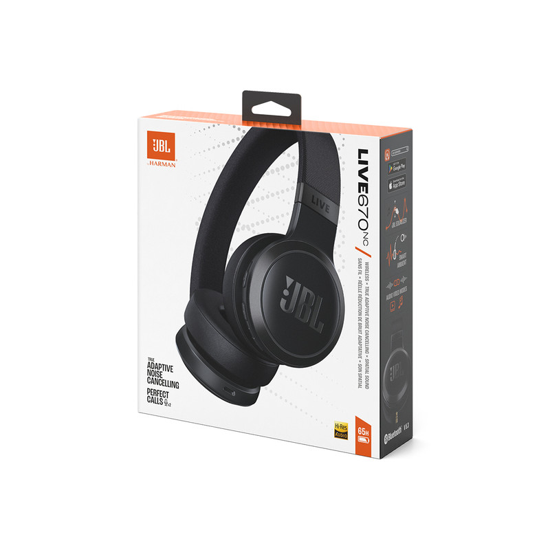 JBL Live 670NC. Type de produit: Casque. Technologie de connectivité: Sans fil, Bluetooth. Utilisation recommandée: Appels/Musique. Fréquence des écouteurs: 20 - 20000 Hz. Longueur de câble: 0,2 m. Poids: 453 g. Couleur du produit: Noir
