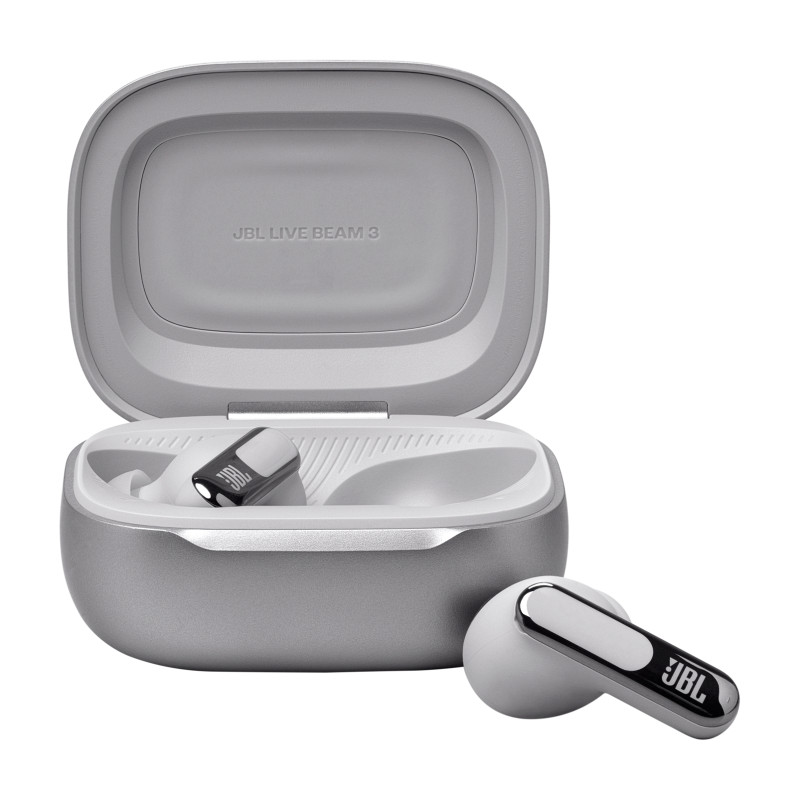 JBL Live Beam 3. Type de produit: Casque. Technologie de connectivité: Sans fil, Bluetooth. Utilisation recommandée: Appels/Musique/Sport/Au quotidien. Fréquence des écouteurs: 20 - 40000 Hz. Poids: 82 g. Couleur du produit: Argent