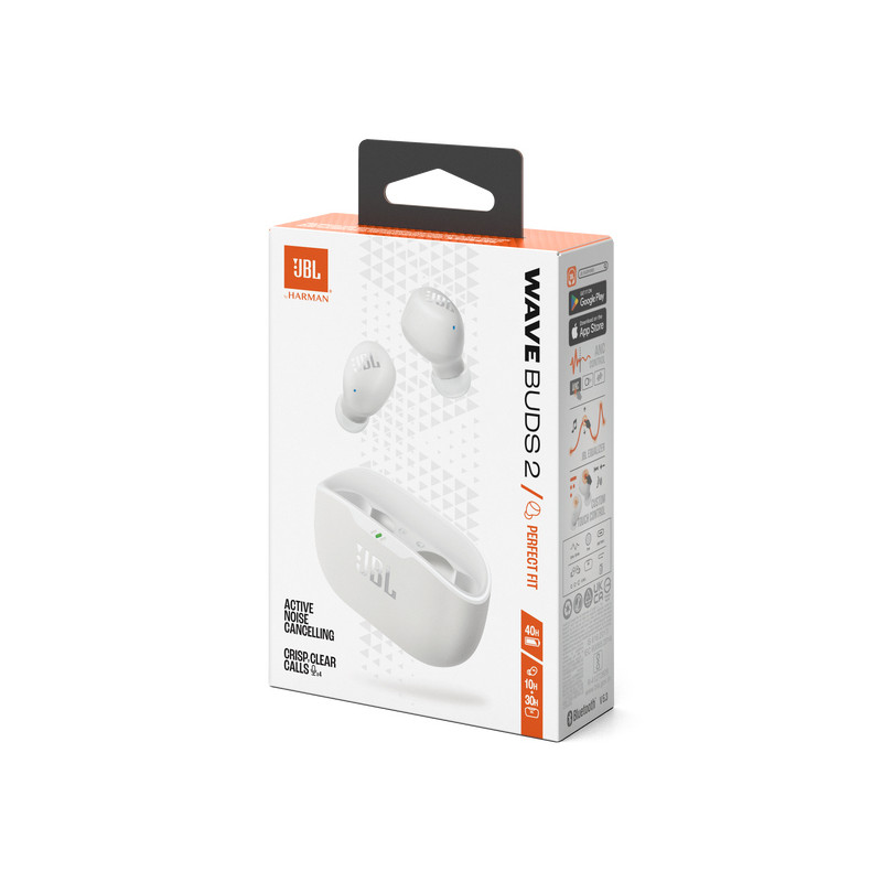 JBL Wave Buds 2. Type de produit: Casque. Technologie de connectivité: True Wireless Stereo (TWS), Bluetooth. Utilisation recommandée: Appels/Musique. Fréquence des écouteurs: 20 - 20000 Hz. Couleur du produit: Blanc