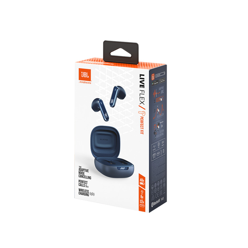 JBL LIVE FLEX. Type de produit: Casque. Technologie de connectivité: Sans fil, Bluetooth. Utilisation recommandée: Appels/Musique. Fréquence des écouteurs: 20 - 2000 Hz. Poids: 37,9 g. Couleur du produit: Bleu