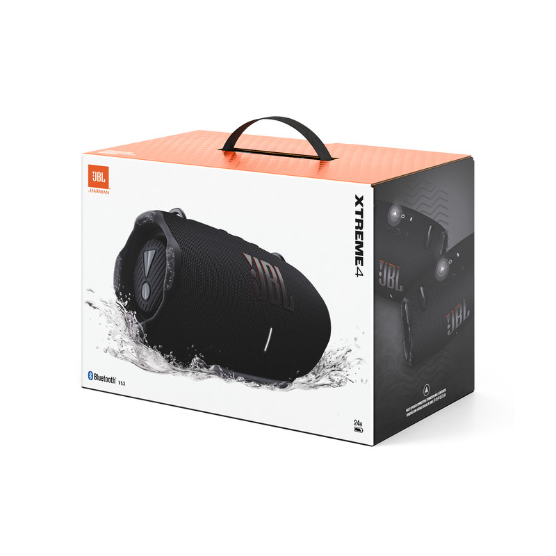 JBL Xtreme 4. Diamètre de haut parleur aigu (impérial): 1,91 cm (0.75"), Diamètre de haut parleur aigu: 2 cm, Diamètre du woofer (impérial): 6,98 cm (2.75"). Puissance évaluée de RMS: 30 W, Puissance en RMS du woofer: 30 W, Puissance en RMS du tweeter: 20 W. Technologie de connectivité: Sans fil, Profils Bluetooth: A2DP, AVRCP, Connecteur USB: USB Type-C. Type de produit: Enceinte portable stéréo, Couleur du produit: Noir, Commande de volume: Boutons. Utilisation recommandée: Universel