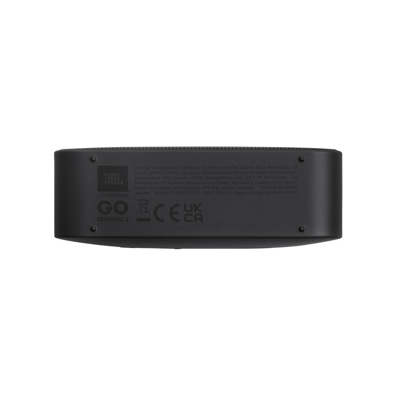 JBL Go Essential 2. Diamètre du haut-parleur: 4 cm. Puissance évaluée de RMS: 3,1 W, Gamme de fréquence: 180 - 20000 Hz, Rapport signal-sur-bruit: 80 dB. Technologie de connectivité: Sans fil, Plage de fréquence: 2,4 - 2,4835 GHz, Profils Bluetooth: A2DP, AVRCP. Couleur du produit: Noir, Fonctions de protection: Anti-poussière, Imperméable, Code (IP) Internationale Protection: IP67. Utilisation recommandée: Universel