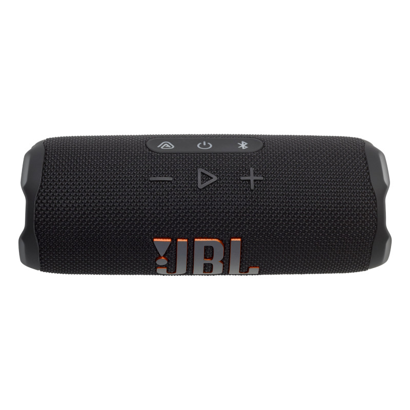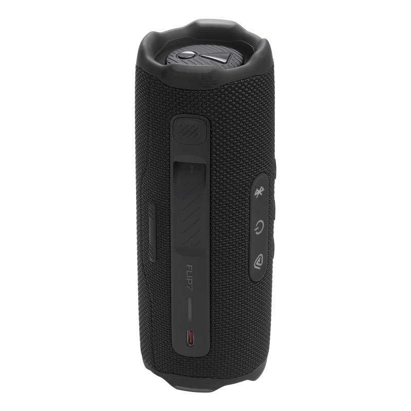 JBL Flip 7. Type d'écouteurs: 2-voies, Diamètre de haut parleur aigu (impérial): 1,52 cm (0.6"), Diamètre de haut parleur aigu: 1,6 cm. Puissance en RMS du woofer: 25 W, Puissance en RMS du tweeter: 10 W, Gamme de fréquence: 60 - 20000 Hz. Technologie de connectivité: Sans fil, Profils Bluetooth: A2DP, AVRCP, Connecteur USB: USB Type-C. Couleur du produit: Noir, Conception du produit: Cylindre, Commande de volume: Boutons. Utilisation recommandée: Universel