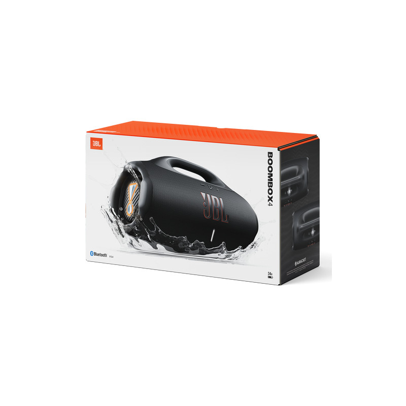 Augmentez le volume à votre guise, où que vous soyez. La toute nouvelle JBL Boombox 4 est plus grande, plus audacieuse et plus perfectionnée que jamais, avec le son JBL Pro puissant toujours clair et puissant, ainsi que des basses profondes. La fonction AI Sound Boost analyse votre musique en temps réel et ajuste le son pour vous donner plus de puissance avec moins de distorsion, même à fond. L’enceinte présente deux grands haut-parleurs de graves, deux tweeters et trois radiateurs passifs, de sorte que chaque morceau sonne de manière plus incisive, avec un son plus net. Pour ajuster le son selon l’ambiance, il suffit de passer du réglage Bass Boost intense à dynamique, ou vice-versa. Avec un design classique revisité, la Boombox est plus grande mais plus légère, afin de pouvoir l’emporter partout où la fête se déroule : à la plage, dans le quartier ou dans le jardin. Certifié IP68, elle est étanche et résiste à la poussière, de sorte que la météo n’est jamais un souci. Et, avec jusqu’à 34 heures d’autonomie (grâce à Playtime Boost), vous pourrez faire la fête jusqu’au bout de la nuit. Avec la JBL Boombox 4, transportez l’ambiance et l’énergie, où que vous alliez.