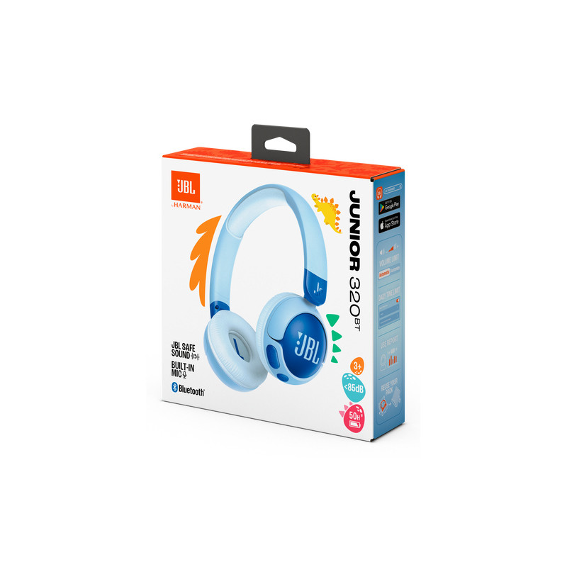 JBL Junior 320BT. Type de produit: Casque. Technologie de connectivité: Sans fil, Bluetooth. Utilisation recommandée: Appels/Musique. Fréquence des écouteurs: 20 - 20000 Hz. Longueur de câble: 0,2 m. Poids: 122,2 g. Couleur du produit: Bleu