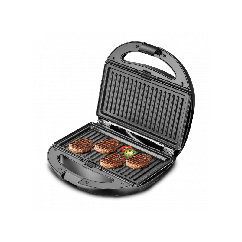 Livré avec 3 jeux de plaques : croque monsieur + gaufrier + grill