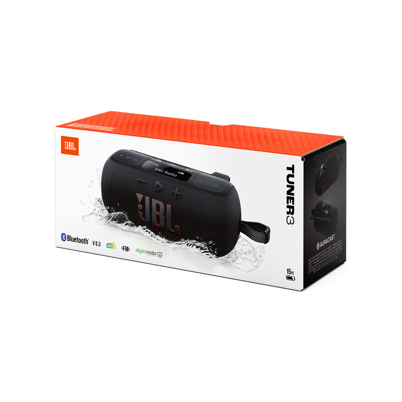 JBL TUNER 3. Radio: Portable, Type de tuner: Analogique et numérique, Type de bandes supportées: DAB, DAB+, FM. Puissance évaluée de RMS: 7 W, Gamme de fréquence: 70 - 20000 Hz, Rapport signal-sur-bruit: 80 dB. Type d'écran: LCD. Connecteur USB: USB Type-C. Couleur du produit: Noir, Coloration: Monochromatique, Commande de volume: Boutons
