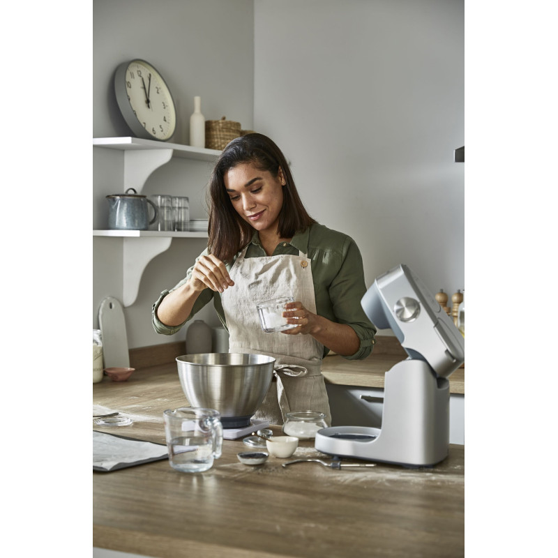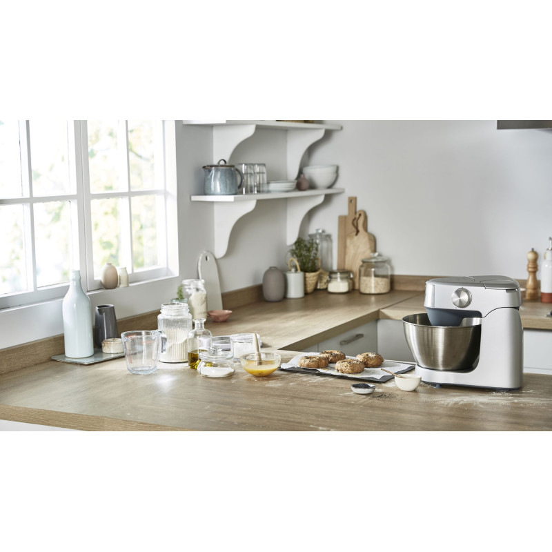 Bol en inox 4.3 l, bol multifonction de 1.4l avec couteau et 3 disques en acier, kit pâtisserie (fouet et pétrin, batteur), presse agrume, blender en verre 1.5l, couvercle anti-projections