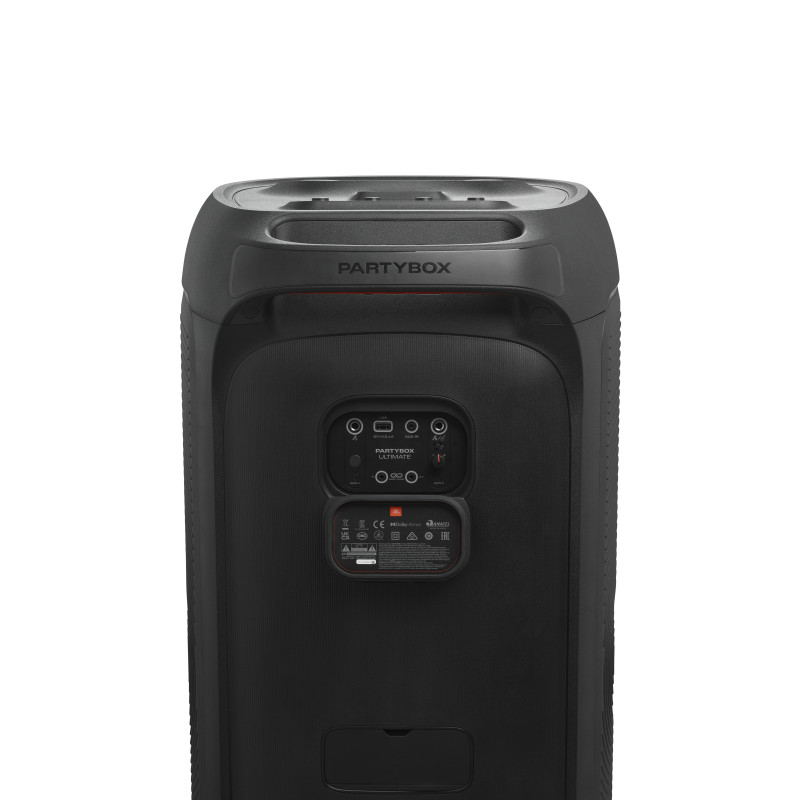 JBL PartyBox Ultimate. Diamètre de haut parleur aigu (impérial): 6,98 cm (2.75"), Diamètre de haut parleur aigu: 7,4 cm, Diamètre de pilote de subwoofer: 24,2 cm. Puissance évaluée de RMS: 1100 W, Rapport signal-sur-bruit: 80 dB. Technologie de connectivité: Avec fil &sans fil, Plage de fréquence: 2,4 - 2,4835 GHz, Profils Bluetooth: A2DP, AVRCP. Couleur du produit: Noir, Conception du produit: Tube, Fonctions de protection: Anti-éclaboussures. Formats audio pris en charge: MP3, WAV